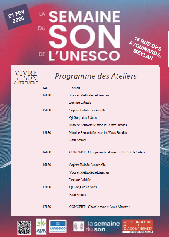 Rejoignez-nous le samedi 1er février, de 14h à 18h, à Meylan (salles du Foyer de 3ᵉ âge, quartier Ayguinards) pour découvrir les multiples facettes du son lors de l’événement « Vivre le son autrement », organisé dans le cadre de la Semaine du Son de l’UNESCO.