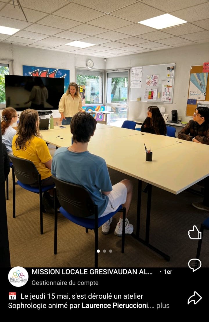 J’anime des ateliers de sophrologie à la Mission Locale du Gésivaudan tous les mois. Ils ont pour but de transmettre aux jeunes des outils permettant une meilleure gestion de leurs émotions favorisant la confiance et la gestion du stress.