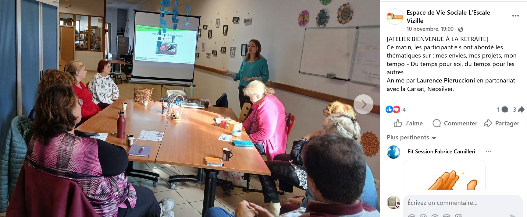 En ce mois de novembre, ce sont les ateliers « Bienvenue A la Retraite » qui sont à l’honneur : Ces ateliers que j’anime depuis près de 2 ans, sont financées par la CARSAT et mis en œuvre par Neosilver.